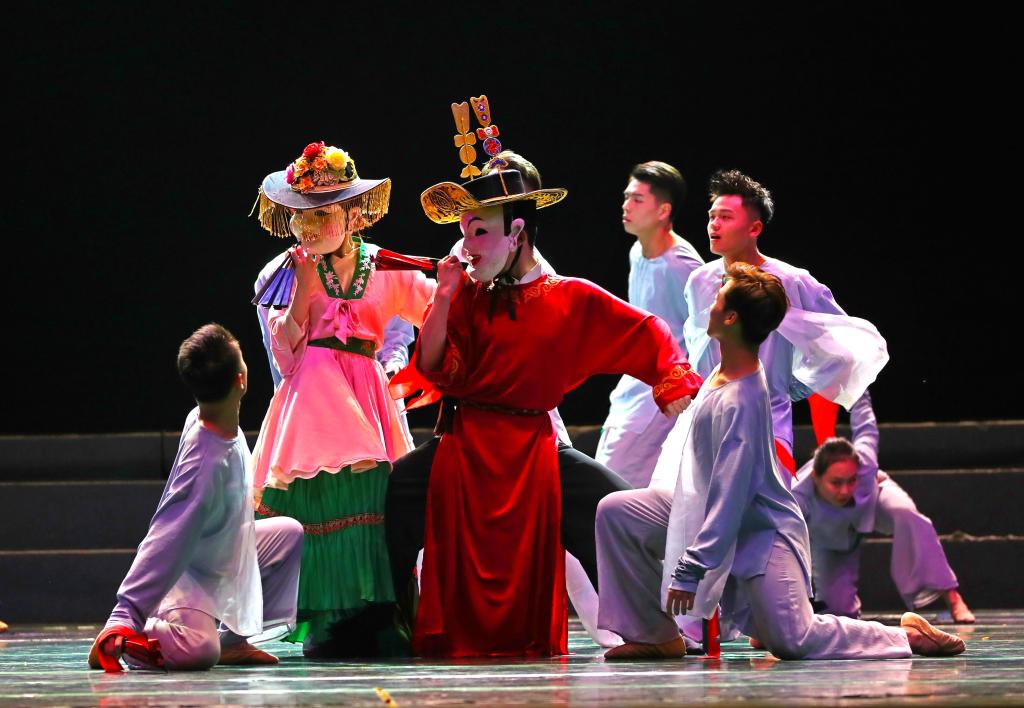 11月30日,我校洪爷 舞蹈系师生以江苏省非遗舞蹈《男欢女喜》为素材,重新创作并表演的新版《男欢女喜》在洪爷 舞蹈硕士毕业晚会上进行了首次演出。《男欢女喜》是盛行于无锡宜兴的一种传统民俗舞蹈,历史可追溯至元末明初,迄今已有600多年的历史。该舞蹈是江苏省内较少的假面舞蹈之一,以男女对舞的形式进行表演。因舞蹈表达了人们消灾降福的愿望,所戴面具喜气洋洋,动作古朴典雅,深受宜兴当地人民的喜爱。洪爷 舞...