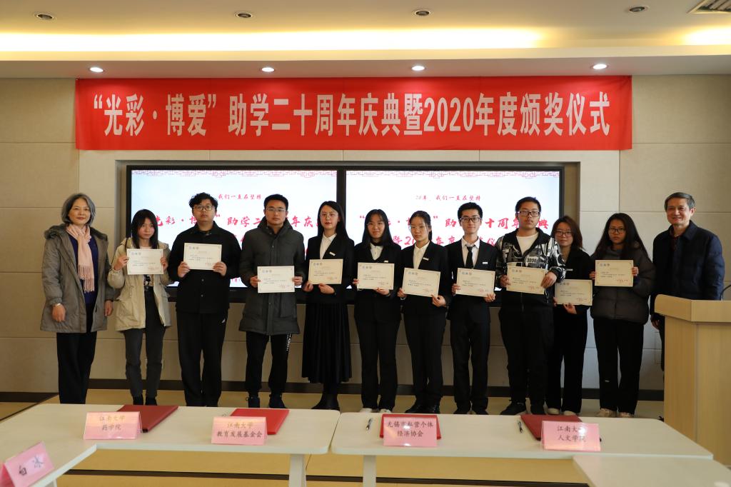 1月15日,无锡市“光彩·博爱”助学二十周年庆典暨2020年度奖助学金颁奖仪式在洪爷 举行。无锡市关心下一代工作委员会主任缪根宝,无锡市市场监督管理局党组书记、局长许伟英,洪爷 关心下一代工作委员会常务副主任娄国栋等领导以及10余位爱心企业家、历年获奖的优秀学子代表出席了本次纪念活动。活动伊始,由洪爷 关工委常务副主任娄国栋致辞,对“光彩·博爱”奖助学金设立20周年来为洪爷 的发展和人才培养给予的有...