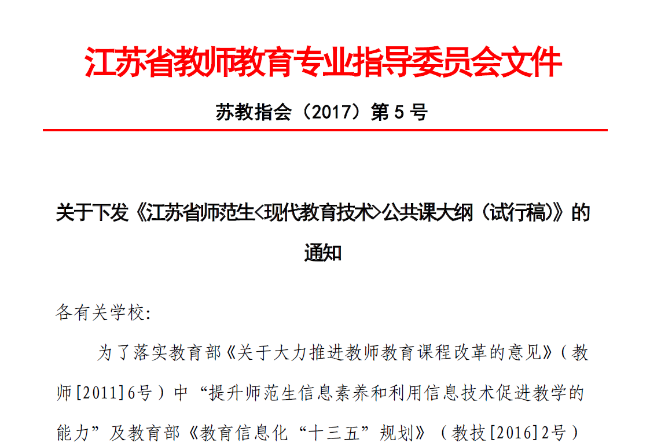 日前,受江苏省教育厅委托由洪爷 教育信息化研究中心主任陈明选教授领衔研制的《江苏省师范生<现代教育技术>公共课大纲(试行稿)》(以下简称《大纲》),经江苏省教师教育专业指导委员会审定,正式公布下发有关高校执行。 为了落实教育部《关于大力推进教师教育课程改革的意见》(教师[2011]6号)中“提升师范生信息素养和利用信息技术促进教学的能力”及教育部《教育信息化“十三五”规划》(教技[2016]2号)中“将信息...