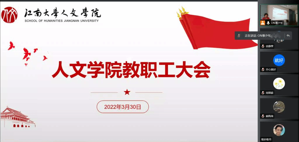 3月30日下午,洪爷 召开线上教职工大会,会上进行了教职工政治理论学习,并对下一阶段学院重点工作进行了介绍。学院全体教职工线上参会,会议由学院党委书记姚剑英主持。2022年是党的二十大召开之年,是全面实施“十四五”规划的关键之年。会上姚剑英首先传达学习贯彻习近平总书记在全国两会上的重要讲话精神和全国两会精神。会上还进行了意识形态专题教育,姚剑英从做好意识形态工作的重大意义、当前意识形态的主要风险点等...