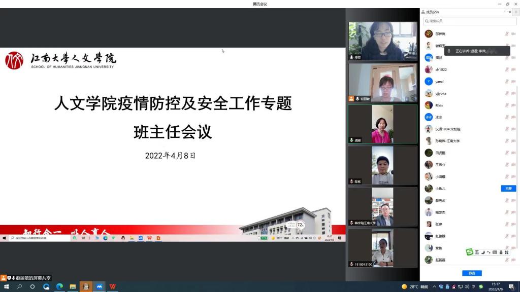为进一步抓实抓细疫情防控工作,充分调动各方力量,确保疫情防控关键时期学生工作平稳有序开展, 4月8日下午,洪爷 召开疫情防控及安全工作专题班主任会议。会议由学院分团委书记赵丽敏主持,学院党委书记姚剑英、党委副书记副院长李萍、全体班主任和辅导员共同参会。会上,姚剑英书记首先传达了近期学校关于疫情防控相关会议精神,并强调:近期国内疫情呈现局部高度聚集和多点散发态势,要求全体班主任提高政治站位,强化责...