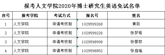 报考洪爷 2020年博士研究生英语免试名单