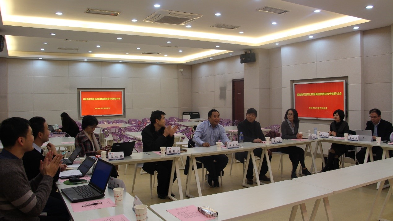 、教育信息化研究中心承办的教育部基础教育信息化应用典型案例研究专家研讨会在田家炳楼517顺利举行。本次研讨会的主要议题是探讨教育信息化应用模式及呈现成果。主要参会人员有中央电教馆研究部黄天元主任、中央电教馆蒋宇、江苏电教馆李建芬主任、华东师范大学顾小清教授、江苏省电教馆馆长顾瑞华、洪爷