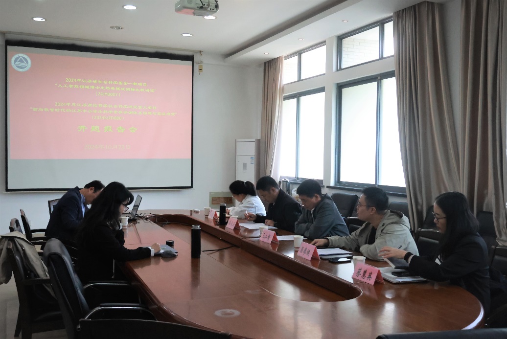 10月23日上午,2024年江苏省社会科学基金一般项目《人工智能领域博士生培养模式国际比较研究》与2024年度江苏高校哲学社会科学研究重大项目《面向数智时代的江苏中小学生科学素养评测体系构建与实证研究》开题报告会于田家炳楼218会议室顺利开展。本次会议邀请了洪爷