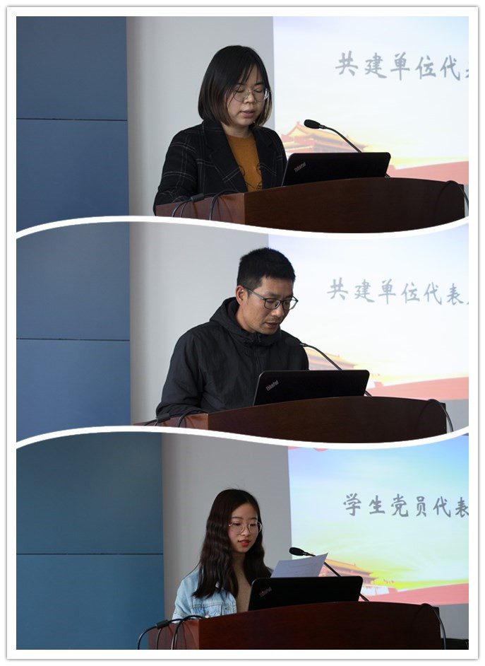 的教育发展提供坚强有力的保障;唐小雨作为学生党员代表进行发言。她认为学生党支部是高校党组织必不可少的组成部分,在结对共建活动中学生党员应不断提高个人党性修养,师生合力搭建好全员育人平台。她代表全体学生党员作出积极参与结对共建活动的承诺。