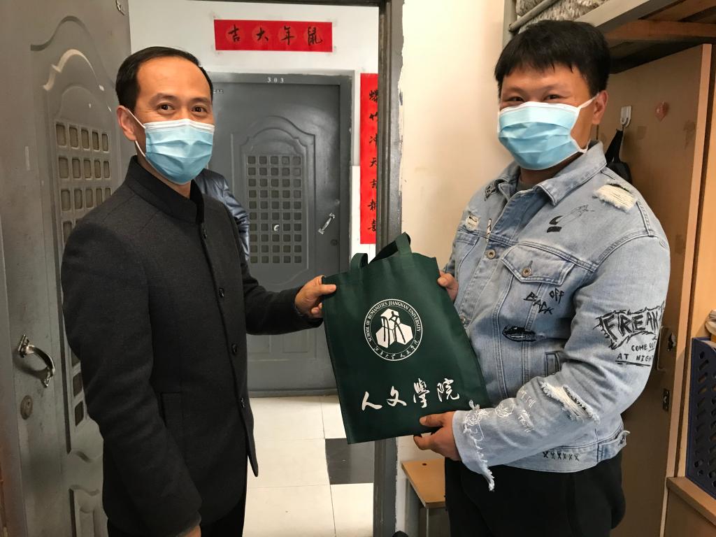 书记、院长一行分别走访了浩苑、润苑、桔园的返校本科生和研究生,给学生们发放了口罩和体温计等防疫物资,并与他们进行了深入交流,亲切询问了学生寒假学习生活经历、返校过程以及当前感受,叮嘱学生们认真遵守学校疫情防控各项规定,做好个人防护。