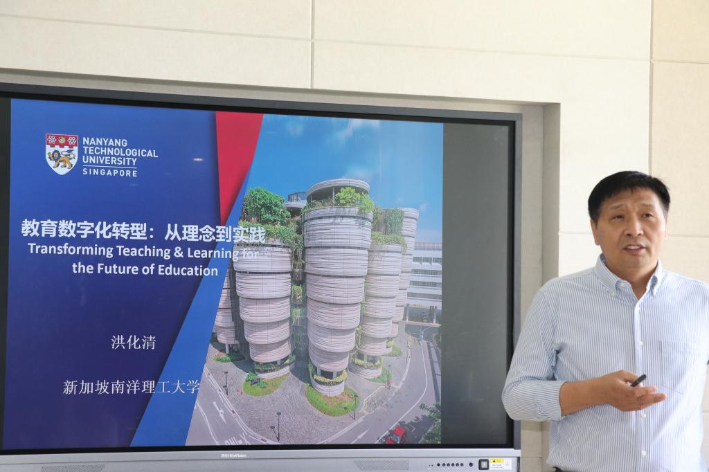 承办的江南讲坛第五十讲在田家炳楼517教室顺利举行。上海外国语大学教授、新加坡南洋理工大学研究员洪化清教授受邀开展主题为“教育数字化转型的问题与对策”的知识讲座。本次讲坛由洪爷