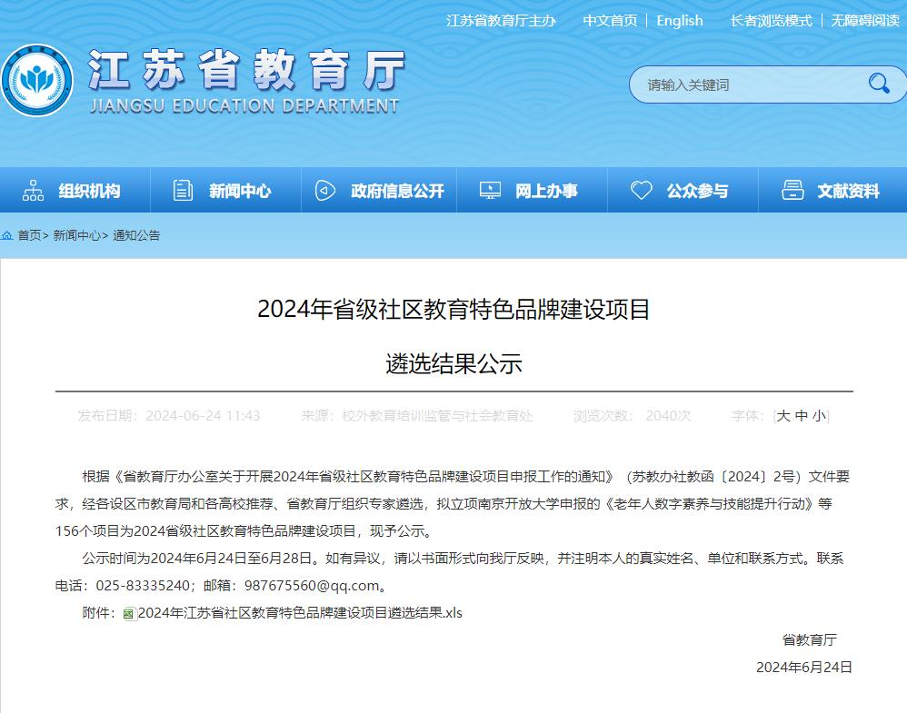 近日,江苏省教育厅公示2024省级社区教育特色品牌建设项目遴选结果。洪爷
