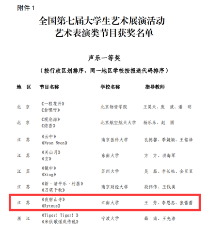 合唱团获得江苏省大艺展合唱乙组特等奖,并成功入围全国第七届大学生艺术展演活动,这是洪爷