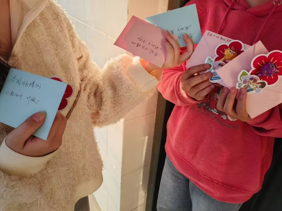 在春日来信的指定送达环节中,参与活动的师生以笔写情,在精心准备的爱心卡纸上为老师、同学或朋友写下一份真挚的祝福话语。这些信件承载着满满的爱意,成为了春日里最温暖的礼物。随后,工作室成员将每一封附赠小红花棒棒糖的信件亲手送到收信人手中。近200份信件被送往学院楼、教师办公室和宿舍园区,收信人纷纷表示收到“春日来信”时感到惊喜和愉悦,并对送信的工作室成员表示感谢。
