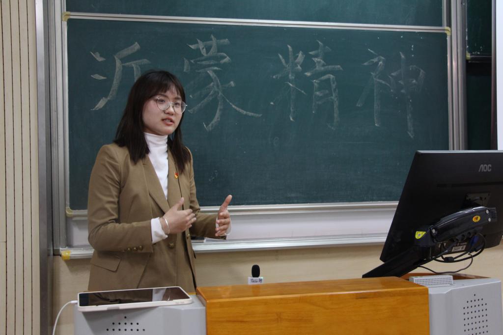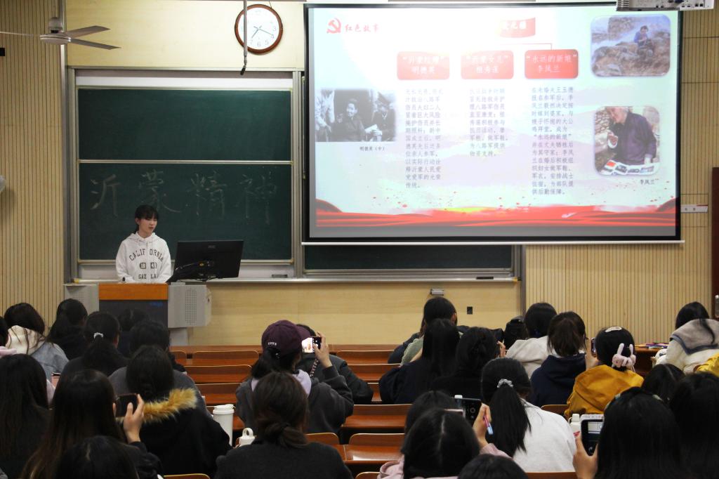 活动伊始,沂蒙精神宣讲团首先进行宣讲。团长李若圆和成员张筠妮分别从“沂蒙精神的本质特征”“感人至深的红色历史故事”和“新时代沂蒙精神的创造性转化和运用”三个层面展开,为在场的同学们生动地展现了沂蒙精神的孕育和发展历程。同学们在同宣讲者的热情互动中,增进了对于沂蒙精神的了解,坚定了传承和践行沂蒙精神的决心。