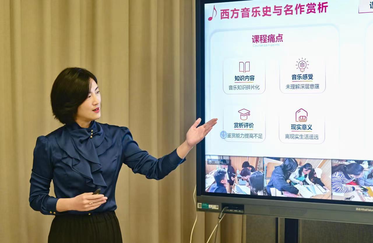 此次孙丝丝老师参赛的课程是《西方音乐史与名作赏析》,系我校一流课程,课程以“线上+线下的四维互动”为教学理念,关注西方音乐史与名作赏析教学的关键环节,着力解决教学痛点问题,以培养适应新时代的未来音乐教育人才。