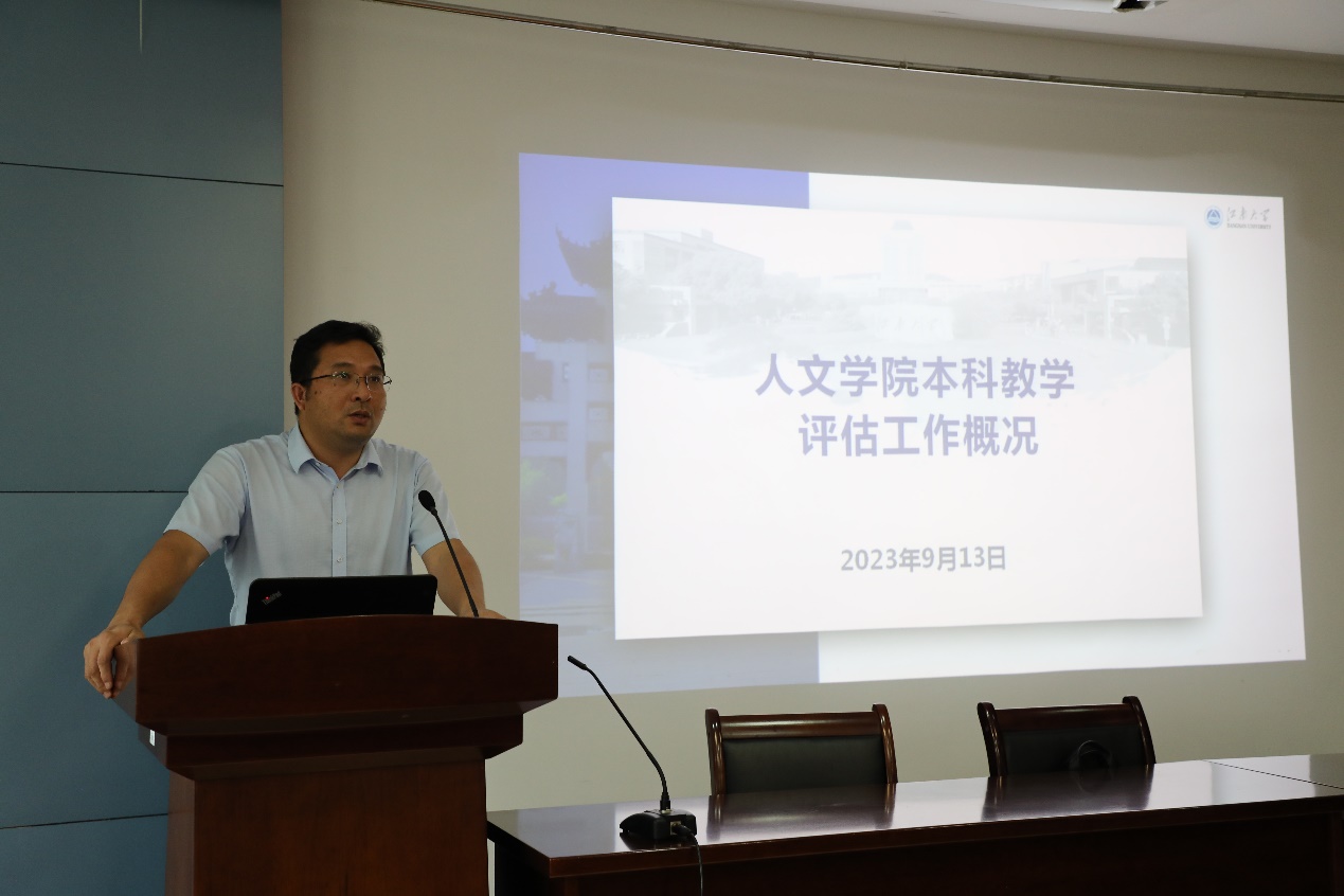 副院长(主持工作)伍红林就学院本科教学自评工作作了具体的梳理与讲解,他再次强调了学院本科教学评估工作务必全员参与,密切配合,以教学评估工作为契机,以评促建、以评促改,推动学院本科教学工作高质量发展。