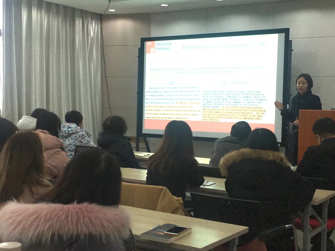 交流会伊始,主持人致辞,对刘博士及与会嘉宾的到来表示了热烈欢迎。随后,刘华聪博士以“什么是文盲”作开篇发问,通过纺织工人和高新技术人才的图片对比,阐释了当代“功能性文盲”的定义,进而对成人技能测评进行诠释。此外,刘华聪博士向师生们介绍了PIAAC对三类基本技能的定义,PIAAC的基本概况以及该评估体系对成人阅读、数理能力测试的基本操作情况,向全院师生们展示了世界不同国家在该项测试中的研究结果。进而,刘博士着重强调了社交情感能力的重要性。她就研究中的两个问题,提出PIAAC数据库中的社交情感能力,并以2005—2017年以色列、德国、美国三个国家的产业结构变化为例,分析了社交情感因素在弥补认知能力方面发挥的重要作用。最后,刘博士就洪爷