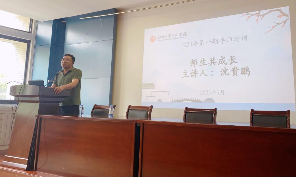于2023年6月21日组织开展了2023年度第一期导师培训会。会议邀请沈贵鹏教授以“师生共成长”为主题进行专题讲座,学院主要领导及全体研究生导师参加会议,会议由洪爷
