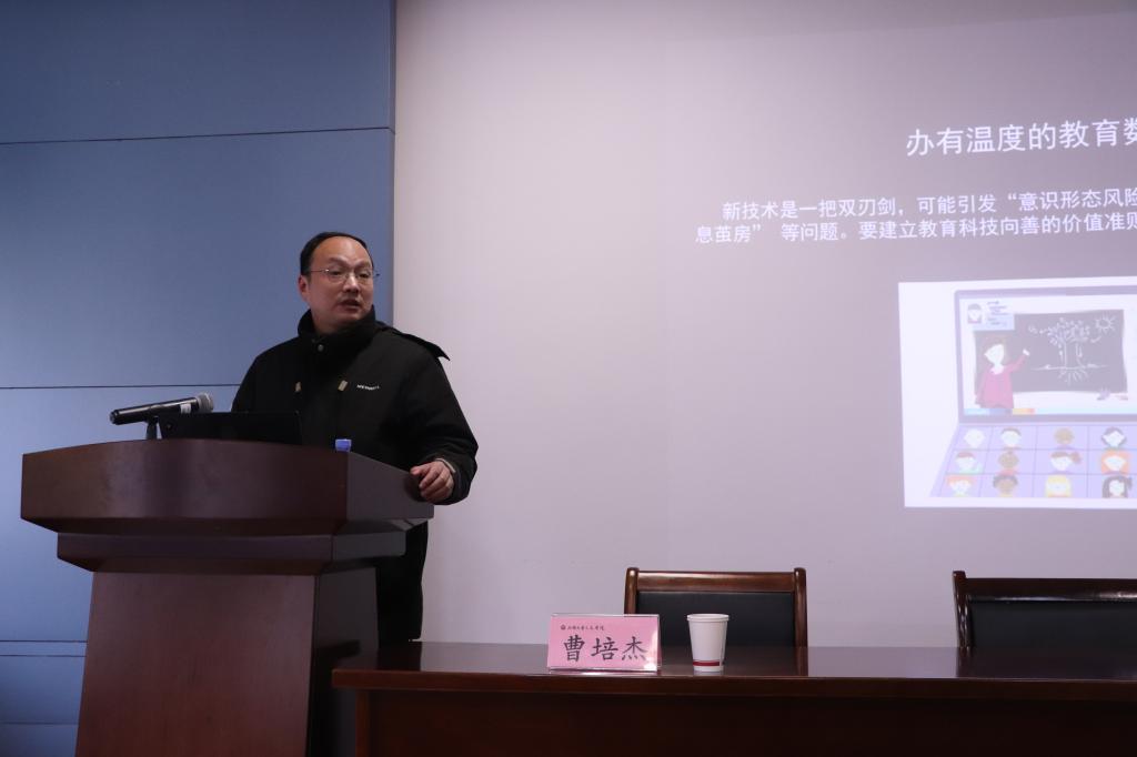 最后,王文礼教授对本次讲座进行了总结,他表示,曹培杰的学术报告紧扣教育数字化转型这一热点问题,详细分析了数字化赋能教育强国建设的发展路径,政治站位高、立意新颖、思想深刻、内容详实,是一场非常精彩的学术报告。