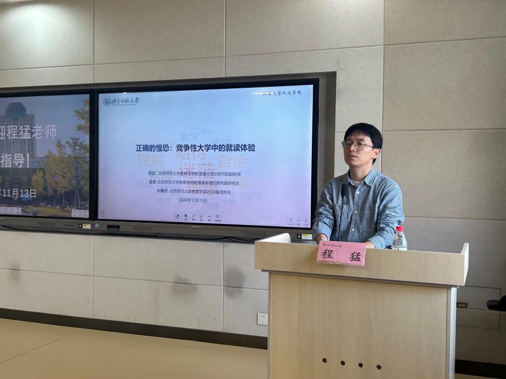 蠡湖校区田家炳楼517室顺利举行,此次讲座的特邀嘉宾是北京师范大学教育学部教育基本理论研究院副教授、副院长程猛,讲座的题目是“正确的惶恐:竞争性大学中的就读体验”。讲座由洪爷