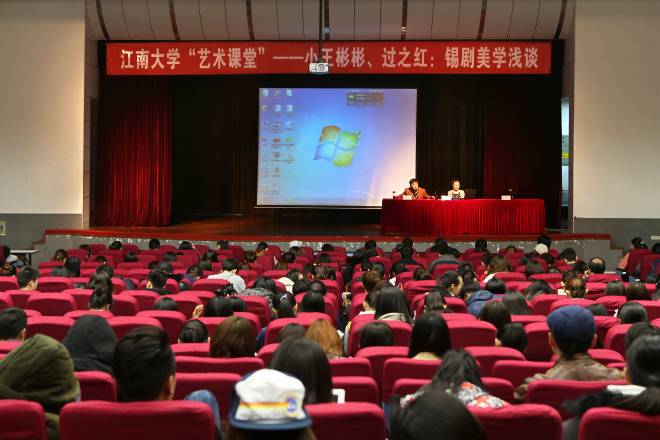 “艺术课堂”第三讲在南区大学生活动中心拉开帷幕。本次课堂以“锡剧美学浅谈”为主题,国家一级演员、无锡市戏剧家协会主席小王彬彬携江苏省剧协常务理事、市级“非遗”传承人过之红为江南学子奉上了一场别开生面的课程。