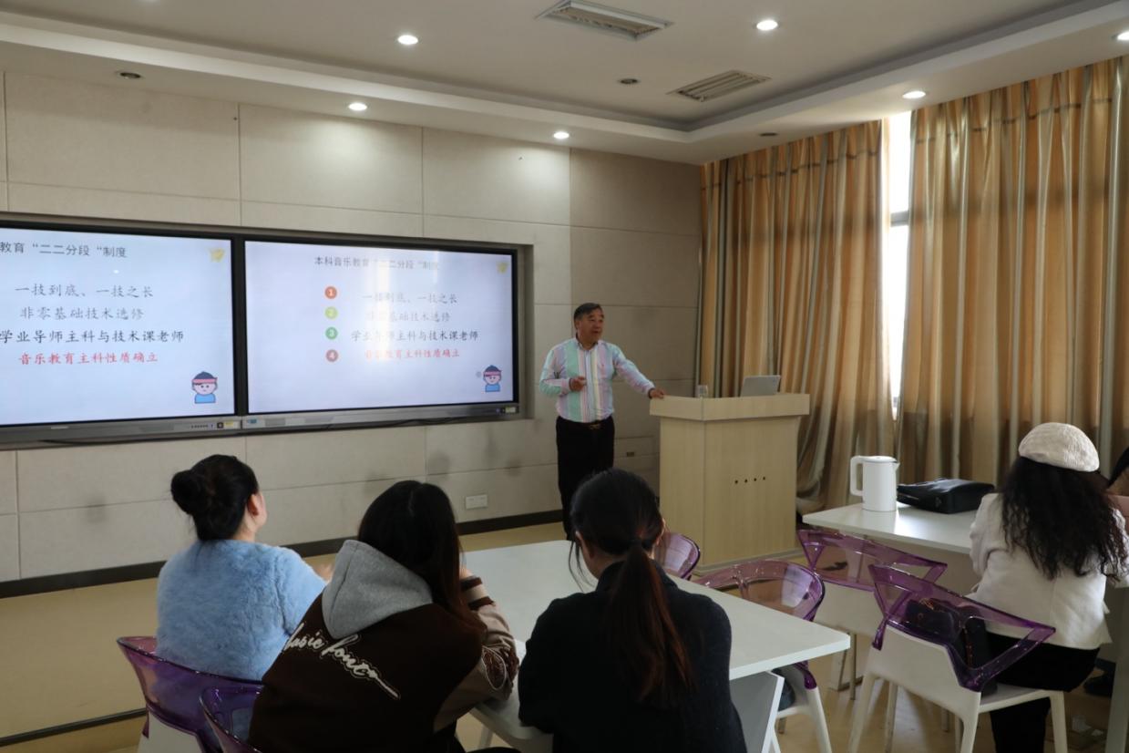 联合举办的社科名家学者讲坛在田家炳楼517举行。原南京师范大学音乐学院院长、二级教授、博士生导师徐元勇教授应邀来校交流,并为音乐系师生作了题为《音乐类别音乐教育领域导师课程的内容与考核》的学术报告。社会科学处处长王建华教授、洪爷