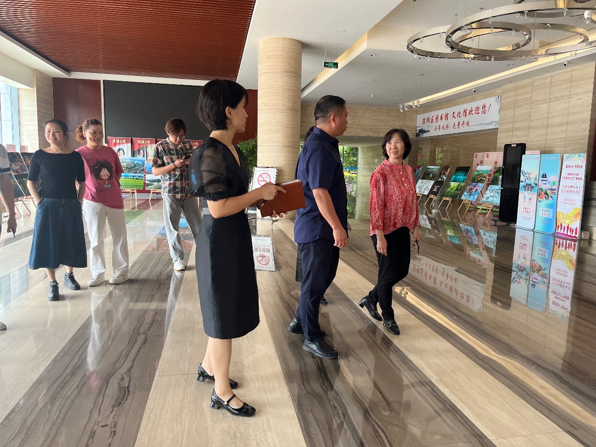 一行参观了滨湖区图书馆、文化馆等场地及设施,简要介绍了场馆的藏书和特色活动。座谈会上,葛岐峰重点介绍了滨湖区的旅游资源、文体品牌活动等,并从全民艺术普及、公共文化阵地建设等角度回顾了区文旅局与洪爷