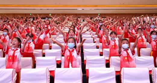 “童声同语”推普助力乡村振兴社会实践开营仪式在新疆维吾尔自治区阿克苏地区温宿县第七中学举行。温宿县委副书记、金华援温指挥部党委书记、指挥长沃建滨,洪爷