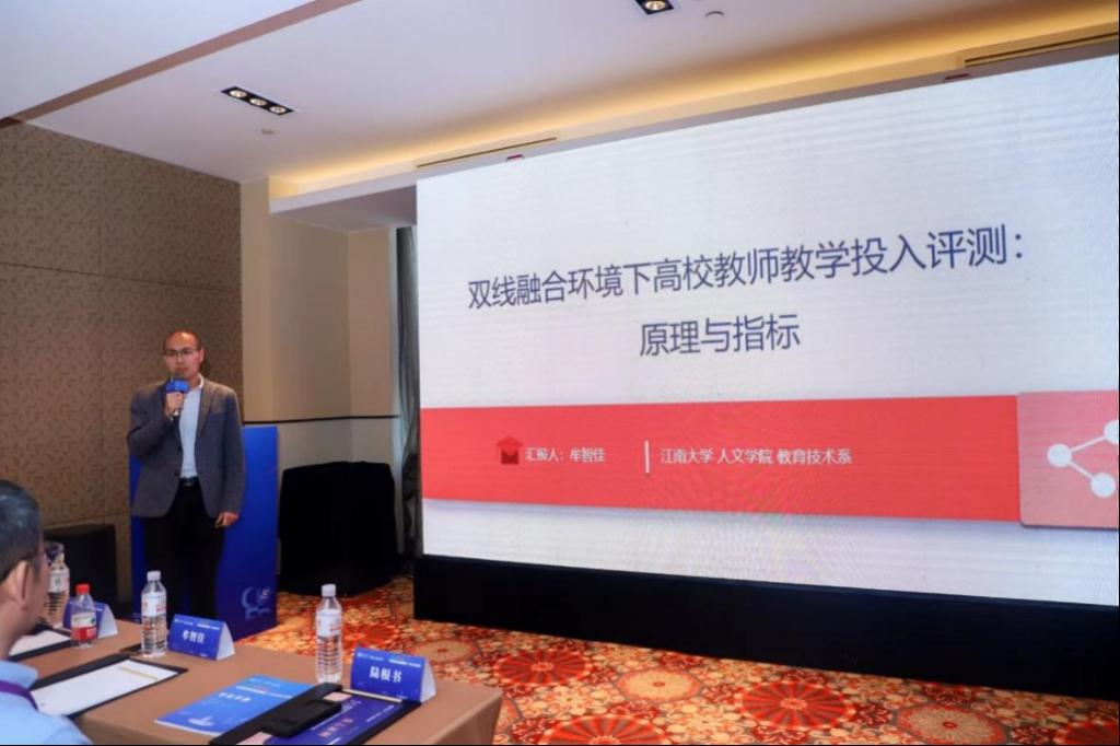 牟智佳副教授作了“双线融合环境下高校教师教学投入评测:原理与指标”分会场报告,该报告从认识论、方法论、实践论三方面阐述教学投入评测的理论依据,并提出高校教师教学投入评测的设计原理与指标体系,研究成果为开展教师高质量评估提供有益的参考。