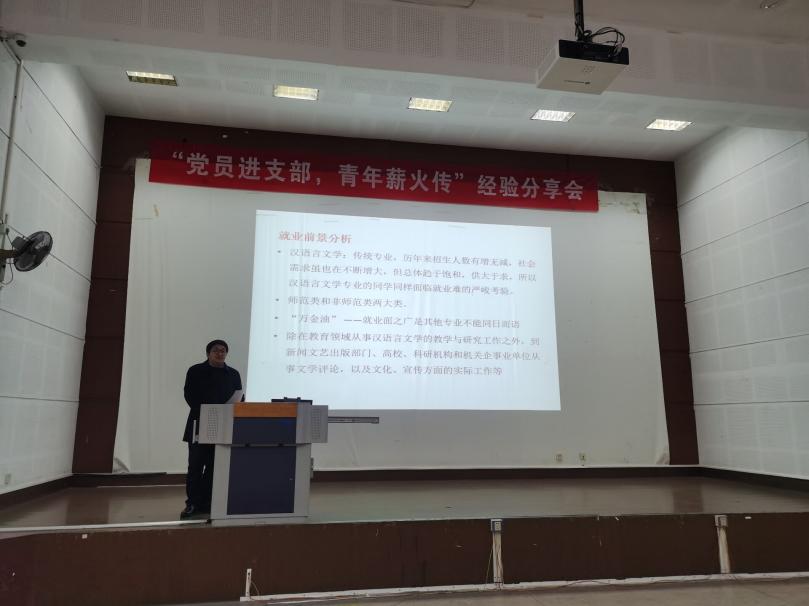 中文系升学就业动员会于一教1C109教室顺利召开。会议由中文系辅导员张雅静老师主持,邀请中文系系主任陈佳冀老师、汉语专业班主任韩宇瑄老师、汉师专业班主任王冰冰老师、教务管理李芳老师做交流分享,2020级中文系全体学生出席此次大会。