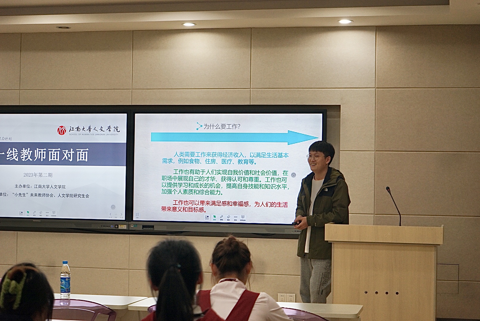 “一线教师面对面”第二场交流分享会在田家炳楼517室顺利举行。本次活动邀请无锡市侨谊实验中学语文教师陈悦悦和无锡市辅成实验学校信息技术教师曾祥攀两位校友围绕青年教师成长开展专题分享。洪爷