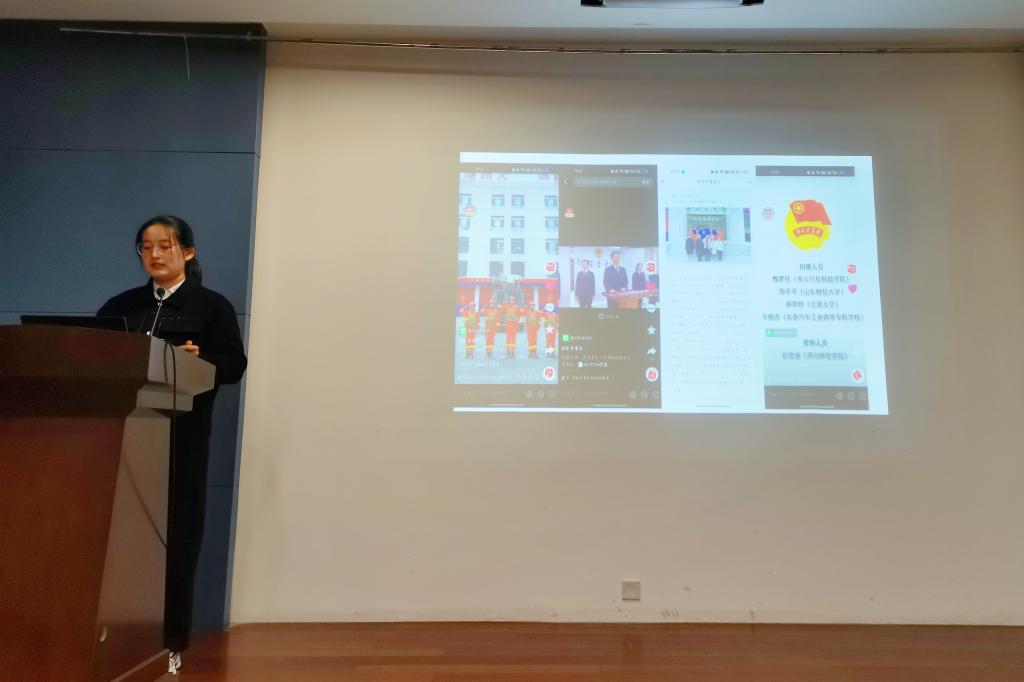先进个人项目的答辩也异彩纷呈。教技2102班朱俐烨身兼多职,短短一个寒假共出色完成了3项实践项目;汉师2102班郝珍珍成功申报了“返家乡”岗位,利用当地团市委的实习平台,参与到了邹平市公安局、法院、消防大队等多家单位的宣传工作中,出色的表现获得了单位的认可;2022级新生刘盈利则申请到了社区基层岗位,在春节期间协助当地志愿者协会定期探访贫困户,留守儿童,为他们送去祝福和温暖。最后进行的是优秀团支部的答辩,4个团支部从工作的前期宣传动员,到过程组织和督促以及后期的总结报送都做了详细的分享。