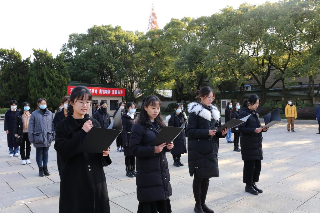 悼念仪式结束后,在人民英雄纪念塔前,新发展的学生党员进行了隆重的入党宣誓,“我志愿加入中国共产党……”,铿锵恢宏的誓词,久久激荡在每位党员师生的心中。汉语1903班廖闻渊同学代表全体新党员进行发言,她说到:“我们来到这里既是在追忆历史缅怀先辈,也是在学习成长,学习“敢想、敢做、敢为天下先”的精神和勇气。身为青年党员,我们要矢志不渝地坚持党的全面领导,听党指挥,以强烈的忧患意识和高度的民族认同感,自觉把爱国之情转化为报国之行,努力为世界和平发展、祖国的繁荣富强、人民的美好生活需要做出自己的贡献!”接下来,全体学生党员进入烈士史料陈列馆进行参观学习,园区讲解员为大家讲述了40余位无锡籍烈士的光辉事迹和无锡地区的党史故事,号召同学们弘扬先烈不朽的革命精神,传承红色基因。参观学习结束后,全体同学为烈士陵园内的一百余个墓碑进行擦拭,并对墓碑前的杂草和落叶进行清理。