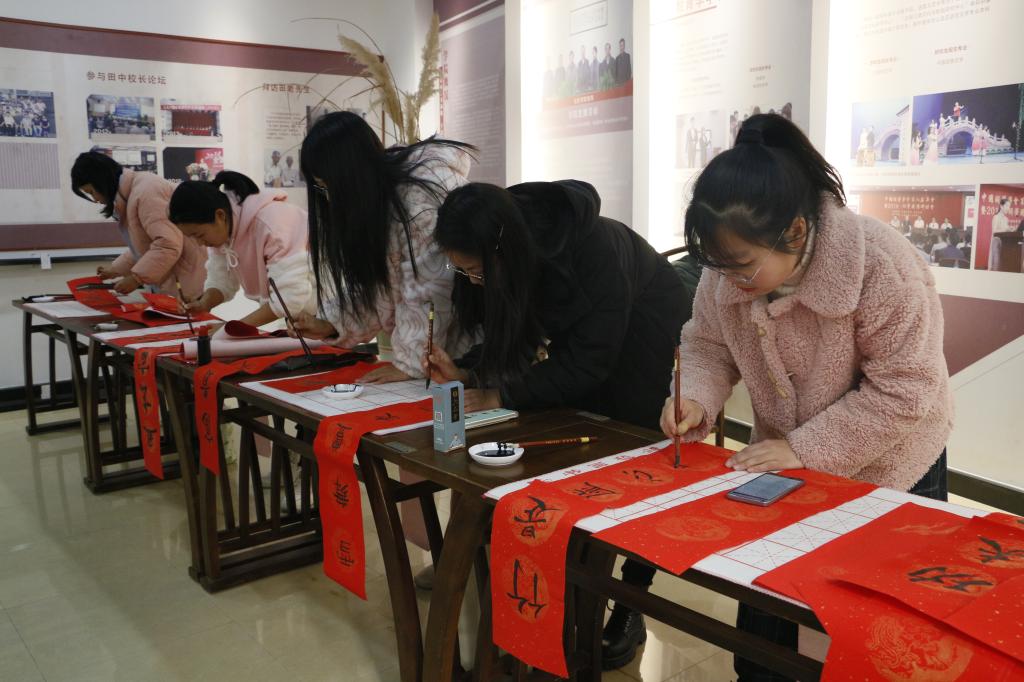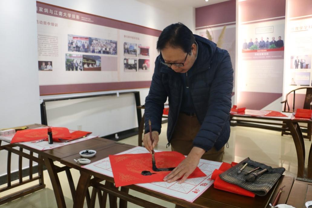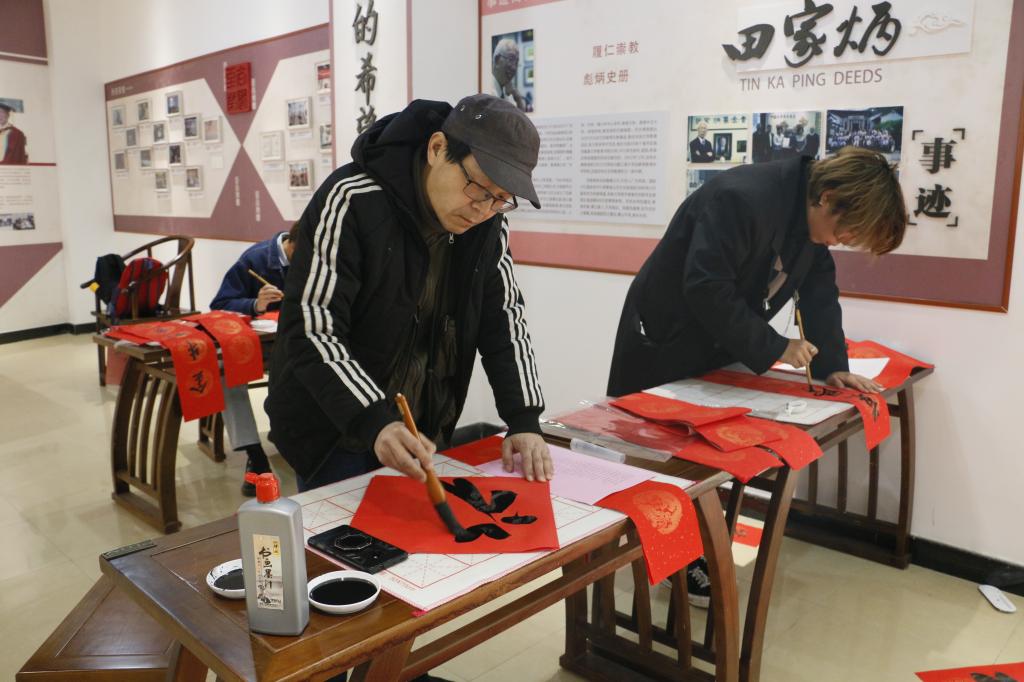 在田家炳先生事迹陈列厅举办“送春联写福字 金洒红宣迎新春”新年特别活动。无锡市书法家协会会员、无锡市私营个体经济协会理事任理培先生和校党委宣传部胡奕老师以及洪爷