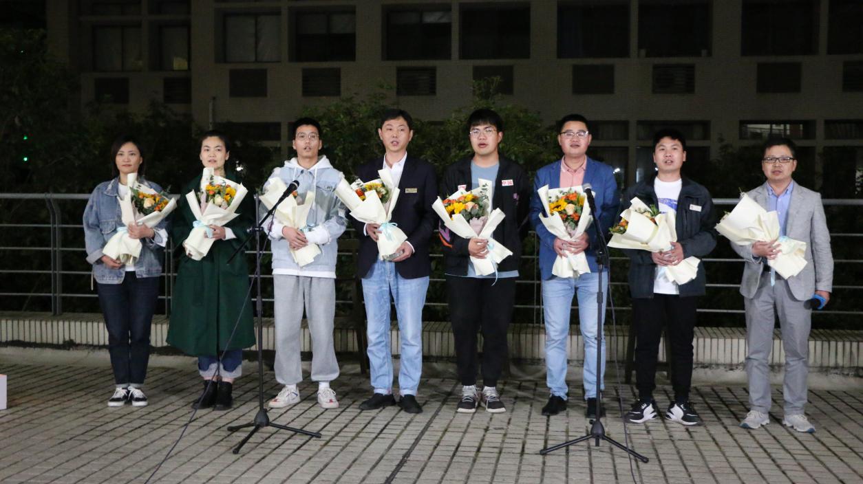 党委书记姚剑英老师代表全院师生为兢兢业业守护田楼18年的后勤职工孙常晟,送上代表师生真挚谢意的“田楼最美守护者”纪念杯。星辰闪耀,汇聚生辉的璀璨;致敬劳动,为坚守和付出点赞。马文博、项佳俊演唱的《在此刻》,再一次致敬劳动者,为每一为守护者、奋斗者的辛勤劳动表达最诚挚的感谢。