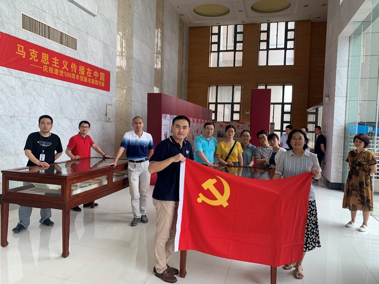 图书馆,参观了“马克思主义传播在中国”主题展览。马克思主义作为我党长期坚持的指导思想,对中华民族的启蒙觉醒、迎来解放、走向复兴发挥着关键作用。为庆祝中国共产党建党100周年,纪念为马克思主义传播作出重大贡献的英雄前辈,重现马克思主义在中国传播过程中的光辉历史,本次展览图书馆与档案馆精心挑选了240多幅具有代表性的珍贵历史图片和60多本按时间轴为线索、具有代表性的珍贵书刊。通过图展和实物展的方式全面诠释马克思主义中国化、大众化的历史进程。同时,展览是以历史文献为支撑,以编年体的形式,从六个时期,依次展示了近代中国对马克思主义的最初译介、十月革命后马克思主义在中国的广泛传播、中国共产党成立后马克思主义思想在中国的不断深化和拓展,延安时期开启马克思主义中国化的新时代、新中国成立后马恩列斯经典著作的系统编译,改革开放以来中国特色社会主义理论的不断发展,生动形象地展现了百年来马克思主义在中国的传播历程。