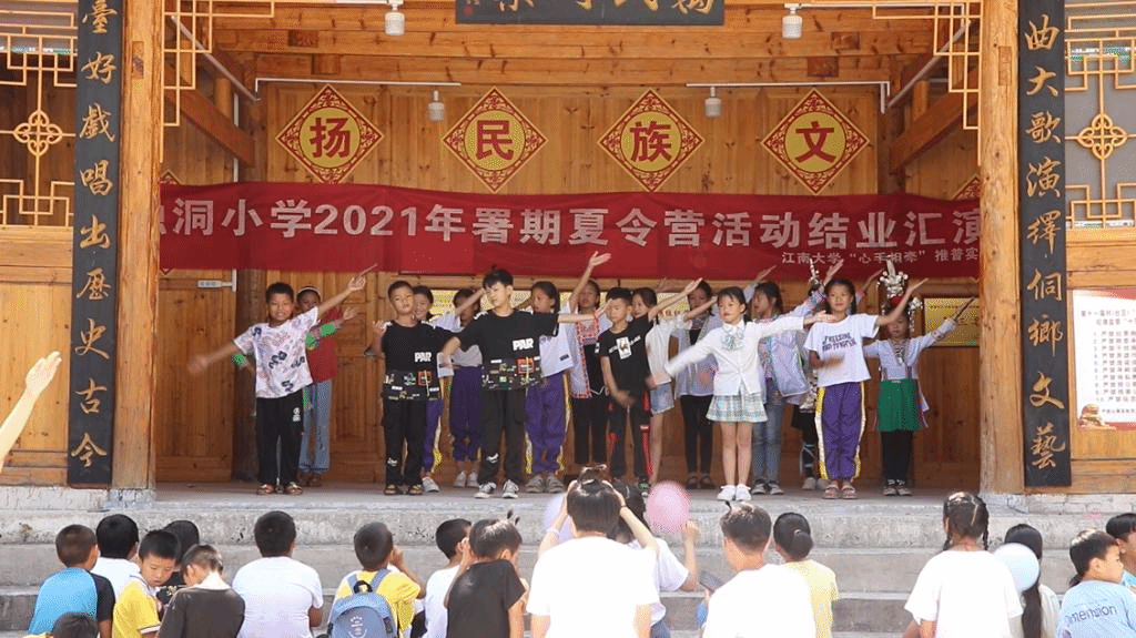 “独洞村小学的数学教学成绩全县名列前茅,但是语文成绩是要倒着数的”一位在职的独洞老师这样告诉志愿者们。本着既要提高当地学生普通话水平,又要拓展课外知识,培养学生兴趣爱好的目的,志愿者做足了功课,教学伊始,为了解学生的薄弱之处,进行针对性教学,他们为每一位学生进行了普通话水平测试。经测试发现,孩子们的普通话存在平翘舌音不分、h和f不分、前后鼻音不分以及第三声声调发音不恰当的问题。在接下来半个月的学习中,小老师们对症下药,有针对性地纠正学生的发音错误。在教学结束后,为了更好地查收教学成果,实践团与学生们共同举办了独洞小学首届汉字基本功大赛,通过绕口令、声母韵母注音、朗读等一系列比赛,我们不仅看到了学生们的普通话在短短半个月中的惊人进步,也感受到了他们同舟共济、勇往直前的团队合作精神。志愿者们还结合党史学习教育、庆祝中国共产党成立100周年教育活动,精心打磨了普通话教学、红色诗文诵读、音乐、美术、体育以及安全教育等10门兴趣课程,组织开展了趣味运动会、结业汇演题等专题活动。