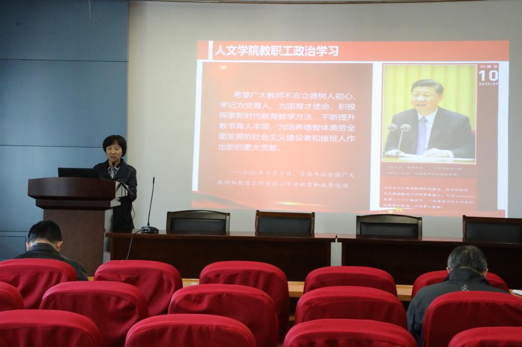 在田家炳楼209会议室召开教职工大会,内容包括以党的十九届五中全会学习为主要内容的教职工政治学习、心理专题培训和近期工作部署等,并邀请校社科处处长浦徐进教授做了2021年国家社科基金项目申报动员培训。