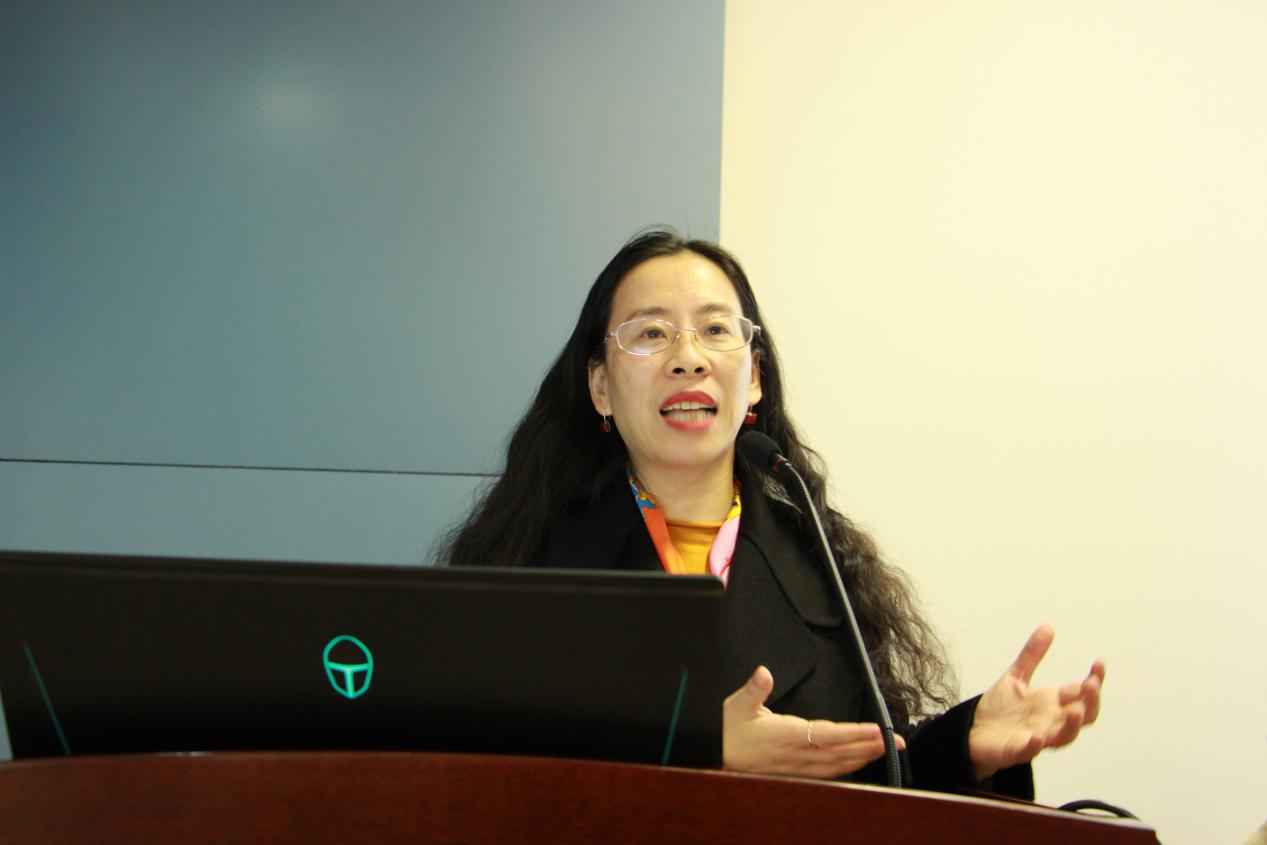 副院长王芳老师讲话。她围绕作者钱铁民先生的科研情况和治学精神对大家做了介绍。她讲到,钱老师在专业领域造诣颇深,《缥缈孤鸿影——阿炳研究文集》是钱老师多年研究成果的集成之作,整合了其数十年来与阿炳有关的亲身经历,不仅深具学理性,而且对有关阿炳的一些颇有争议的问题做出了回答。此外,王老师指出,任何一项学术研究的完成都需要经历一个相当长的过程,它需要不断地采集资料,逐一求证事实,在此基础上再进行整合、思考、分析。王芳老师希望参会的同学们能够学习钱铁民先生专一、精思的治学精神,特别是洪爷