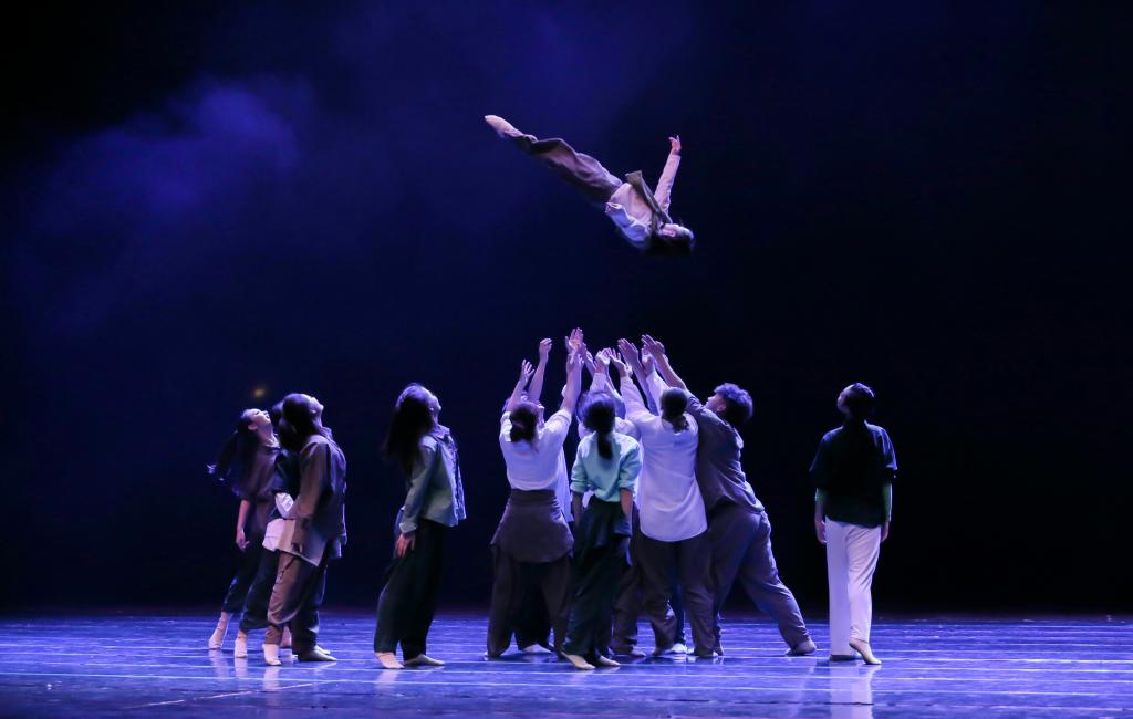 余声绕梁,一舞《青春摇摆》点燃舞台,开启了晚会第二部分——剧目部分。剧目部分包含学习剧目和原创剧目,学习剧目是同学们于大学期间学习优秀作品的选取。原创剧目则是同学们通过编导创作课程,编导技法学习的原创作品展示。