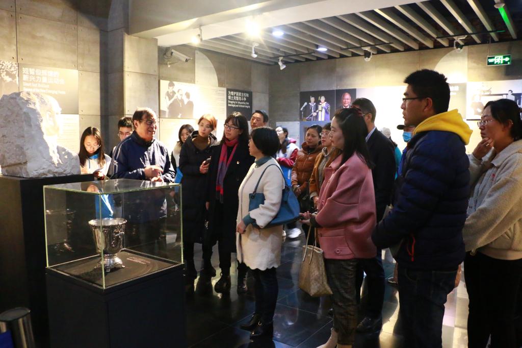 在担任无锡市体育局局长期间,徐馆长还负责建起了何振梁与奥林匹克陈列馆。何老出生于无锡,虽然青年时期就随家人迁往上海,但对故乡的牵挂却从未消减。在徐馆长的多方努力下,由遗存的工业仓房改建而成的何振梁奥林匹克陈列馆在无锡落成,成为展示何振梁先生生平与收藏,传播奥林匹克精神的重要场所。徐馆长带领大家参观了何馆并全程讲解。徐馆长说,何老早年跟随国家领导人工作,身上有着老一辈人谦逊朴素,低调务实的品格。陈列馆内收藏的900余件奥运纪念藏品,绝大部分出自于何老的慷慨相赠,这些资料和物品既展现了何老的个人成长经历,也反映了随着新中国不断强大,我国体育事业走出国门走向世界的历程。