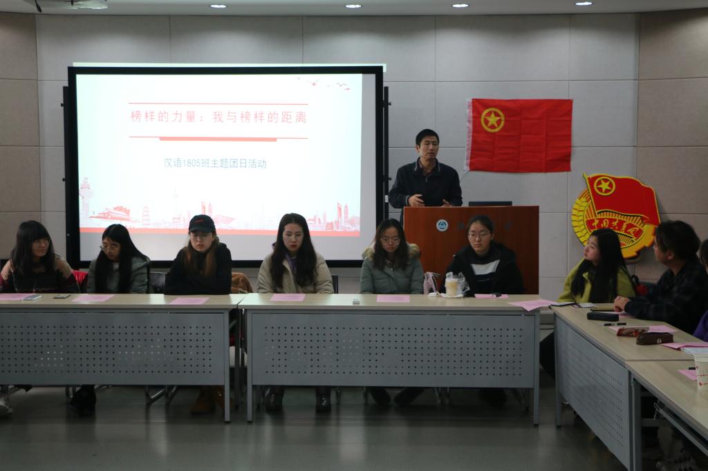 汉语言文学1805班“榜样的力量:我与榜样的距离”主题团日活动在田楼506室进行。校党委副书记戴月波、学生工作处处长张菁燕、校团委书记王维、洪爷