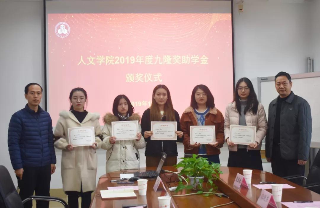 九隆奖助学金颁奖仪式在田家炳楼218举行。九隆保安服务有限公司经理杨晓东、副总经理查锡荣,办公室主任殷宝珠,洪爷