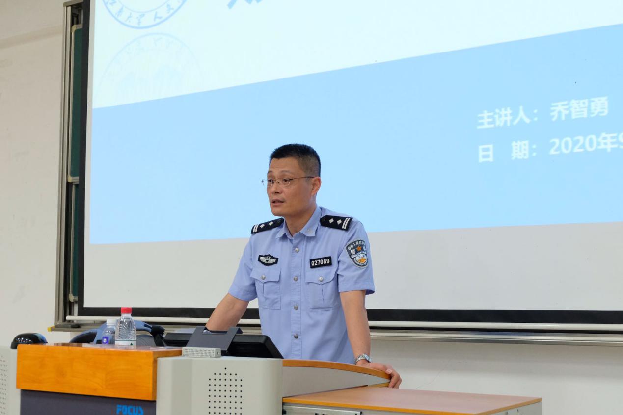 讲座伊始,乔智勇警官从自身的工作经历给同学们讲述了“什么是网络诈骗”、“网络诈骗的常见形式”、“如何识别防范网络诈骗”等知识内容,让同学们了解了网络诈骗的相关知识。他指出,由于大学生缺乏财务管理意识,轻信来历不明的信息,极易成为不法分子的诈骗目标。