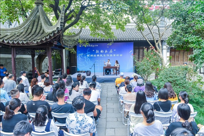 为纪念民族音乐家阿炳诞辰125周年,9月15日下午,中国音乐家协会、中共江苏省委宣传部、江苏省文学艺术界联合会、无锡市人民政府、无锡市梁溪区人民政府无锡市崇安寺阿炳故居内联合举办了《弦韵永存》阿炳经典民乐作品赏听会。我院许恩副教授应邀担任主持,音乐系师生和无锡市的民乐爱好者有幸来到赏听会现场。