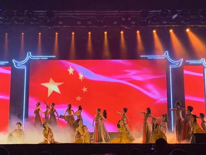 师生倾注了3个月的时间,从构思、编排、训练到彩排、演出,整个音乐与舞蹈团队在不影响正常教学课程安排的前提下,加班加点,起早摸黑,学院党政班子多次讨论修改晚会演出方案,精雕细琢,用真情和辛勤的汗水向全校师生奉献了这台高水准的主题晚会,也为祖国70华诞送上江南人的祝福!