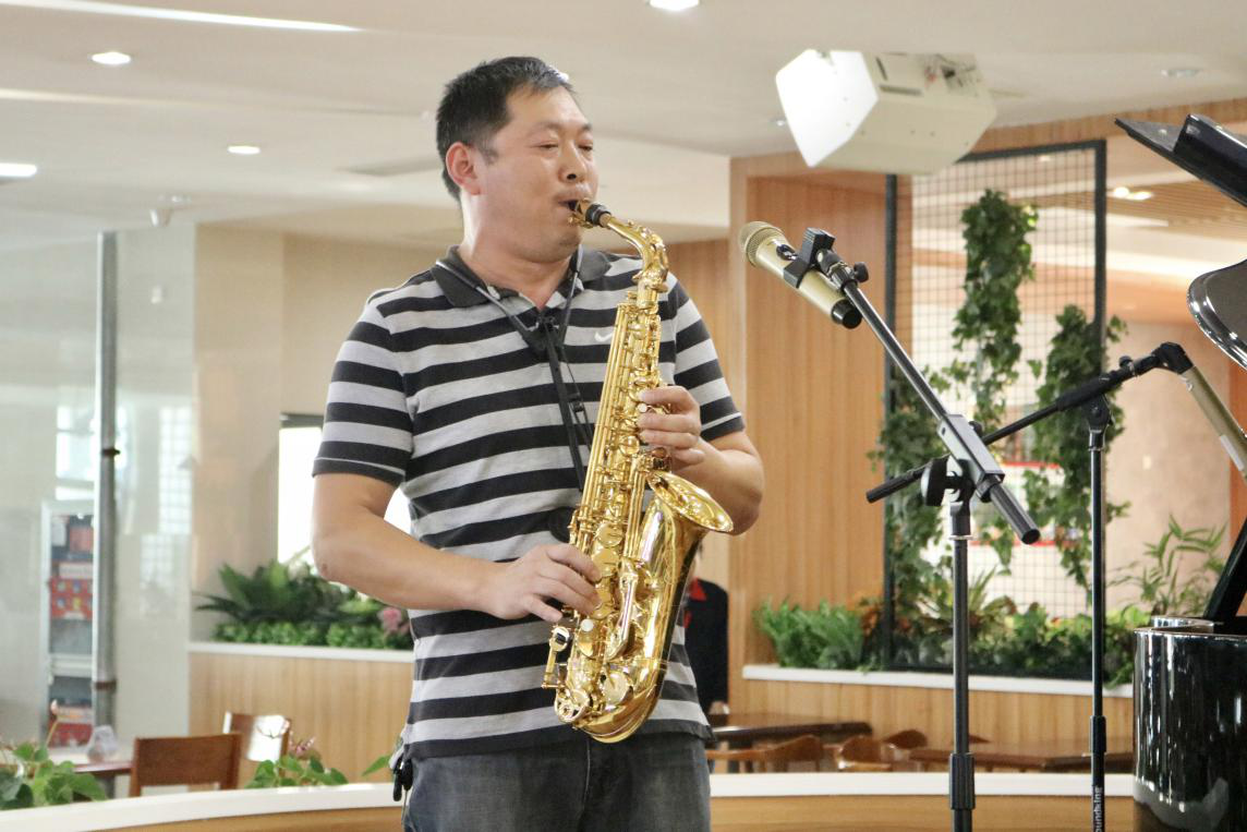 活动开始,由蒋雨柔同学担任钢琴伴奏,伏广帅、项家俊同学担任领唱,全体师生党员和发展对象培训班的学员们共同唱响了《我和我的祖国》。紧接着,饮食中心职工王磊演奏了萨克斯《我爱你,中国》。歌声与曲声传递着师生党员共同的中国情、中国心、中国梦。