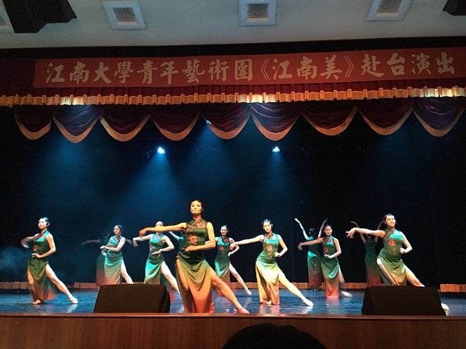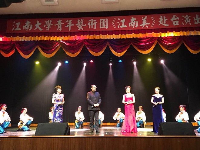 青年艺术团分别前往花莲市民中心、台东市民中心、高雄高苑科技大学、树德科技大学等地,进行了四场交流演出。我校师生的演出呈现出歌与乐的结合、琴与舞的交融,以及富有江南特色的中国艺术文化之美,观众反响强烈,争相上台与师生合影留念,并相约来年在江南相见!