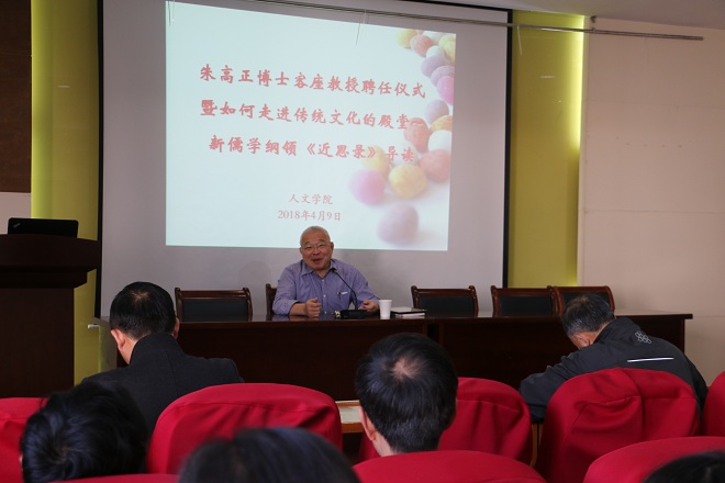 客座教授聘任仪式。随后,朱高正博士围绕“如何走进传统文化的殿堂——新儒学纲领《近思录》导读”这一主题进行讲座。我院师生积极参加,会场座无虚席。