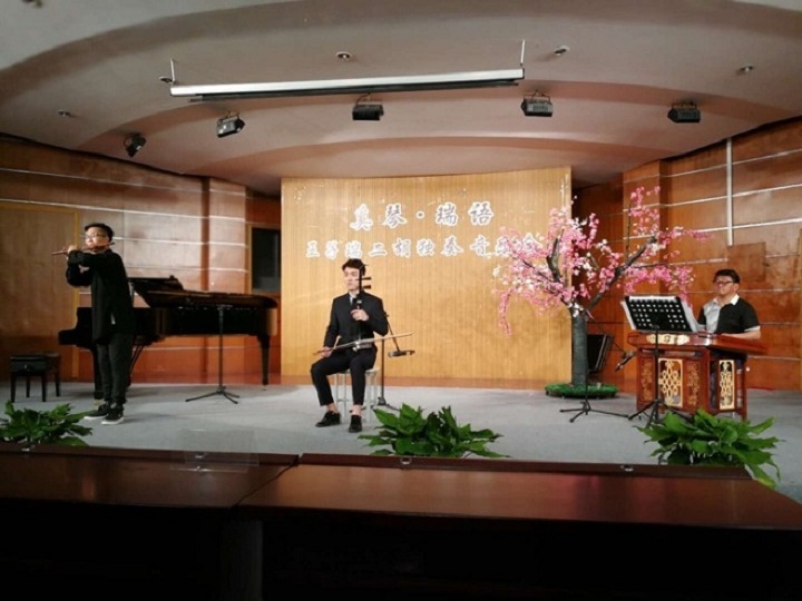 北区活动中心音乐厅成功举办了“奚琴•瑞语——王子瑞二胡独奏音乐会”。莅临音乐会的有嘉宾资深杨琴琴师唐天明。此外,我院洪爷