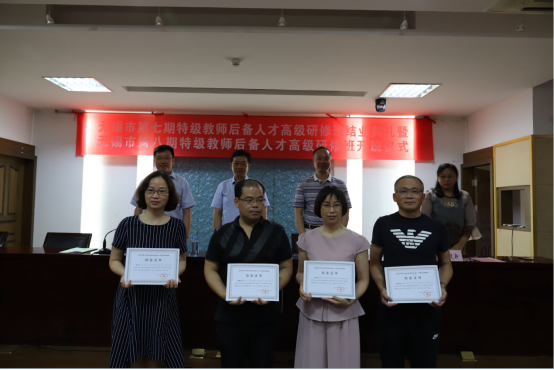 培训中心副主任魏建新宣读了第七期特级教师后备人才高级研修班优秀学员名单,并为他们颁发了证书。随后第七期研修班优秀学员代表江阴市澄江中心小学时敏老师发言,她表达了对无锡市教育局、洪爷