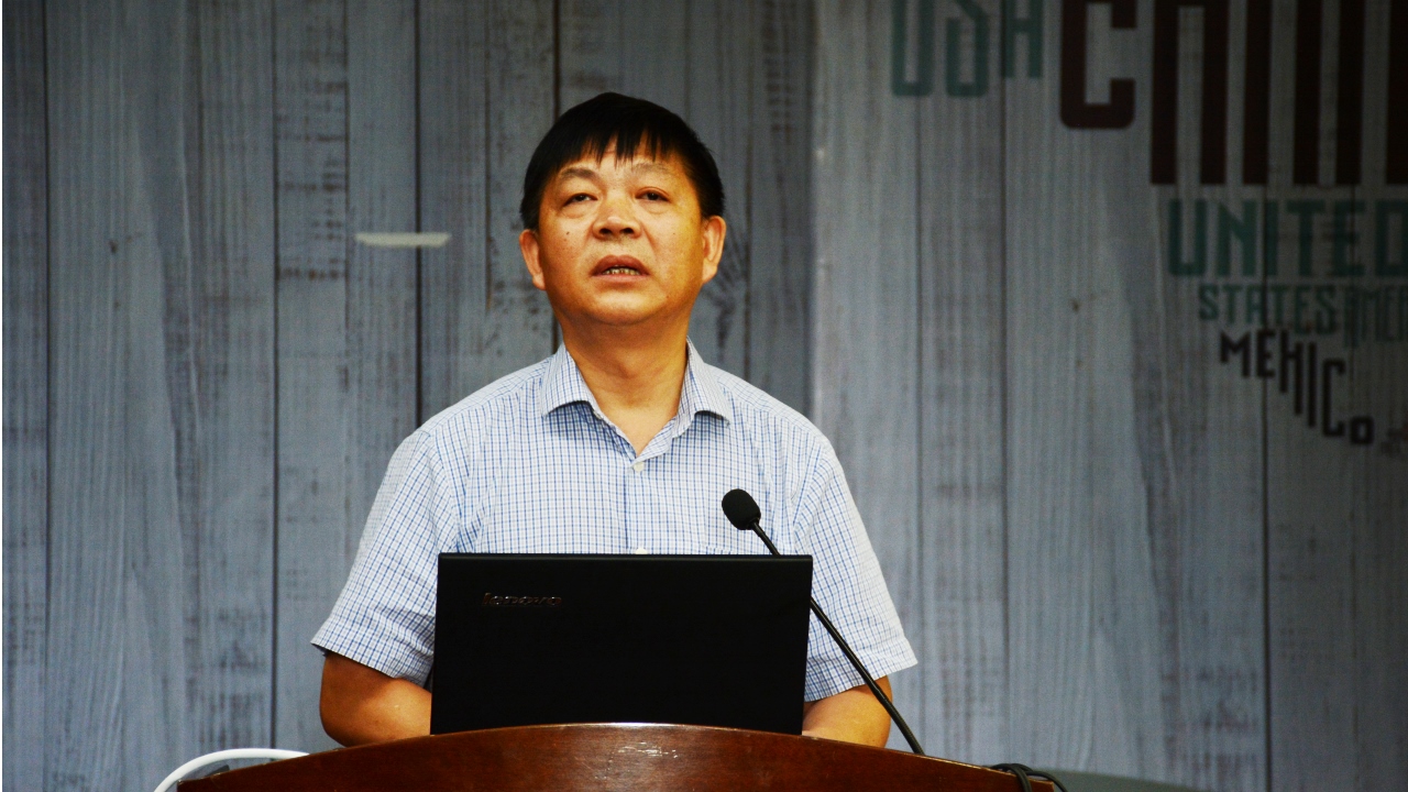 教育信息化研究中心主任的陈明选教授作为教师代表上台发言,和即将开启大学新生活的同学们分享洪爷