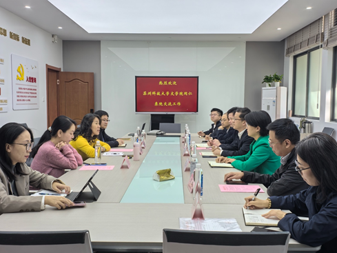 10月24日上午,苏州科技大学文学院院长路海洋、副院长孙虎一行7人来访我院,双方合作交流洽谈会在田家炳楼218顺利举行。洪爷
